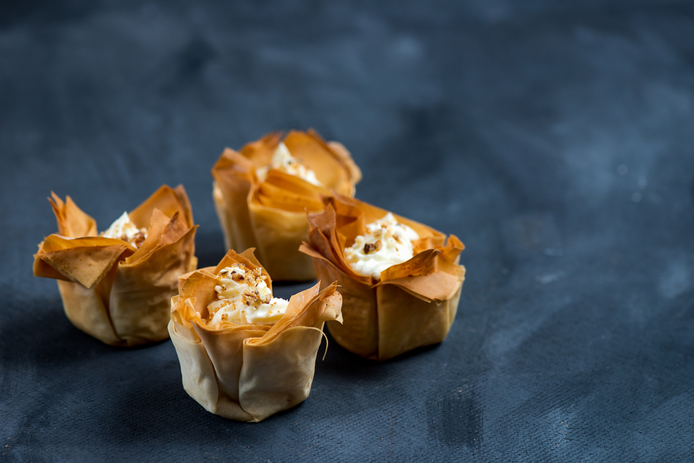 סלסלאות בצק פילו קריספי מעוצבות שפשוט כיף לטרוף במילוי מיקס גבינות משובחות ותרד מוקפץ עם שום