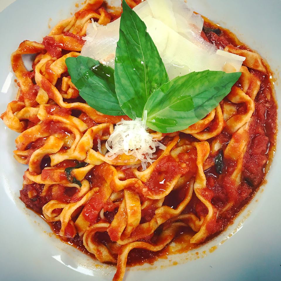 רוטב עגבניות מעגבניות טריות שקולפו מקליפתן, נטחנו ובושלו אליהן הוספו עשבי תיבול טריים ליצירת רוטב מפנק שעוטף את הפסטה ומעשיר אותה