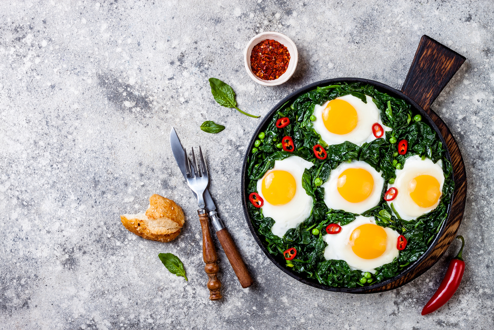 שקשוקה ייחודית שמשלבת תרד, סלרי, בצל ועשבי תיבול עם 8 ביצים ולחם פרנה מפנק